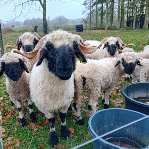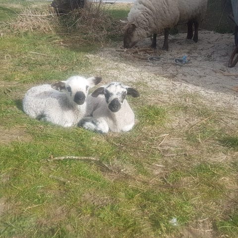 Die Eltern sind von April bis Mai 2025 geboren und sind ein Mix aus, Christbaumschaf, ostfriesisches Milchschaf, Texel und Suffolk. Der Bock war ein reinrassiger Suffolk.