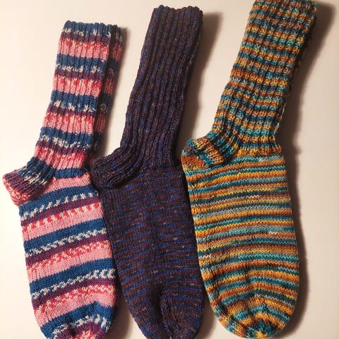 Dejlige varme uld sokker str. 38 i skønne farver til de kølige dage. Materialet er 75% uld og 25% polyamid, mærke Sock Yarn. Minus tørretumbler og vaskes på 30 grader. Koster 80 kr pr par.