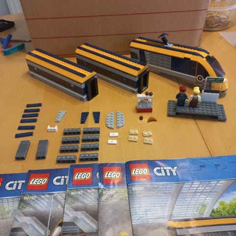 1 Lyntog og 2 passager vogne. Taget på den forreste togvogn kan fjernes for at få adgang til førerhuset med ET sejt instrumentpanel.