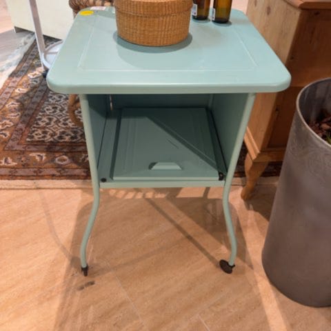 Bordet har en åben top med kvadratiske indhold, en hylde under og en lille skuffe, hele kommoden er lavet af træ. ,Afhentes i:,Røde Kors Bellinge (461),Bemærk at mail, chat og beskeder ikke besvares, og varen skal købes på knappen "Gå til varen"