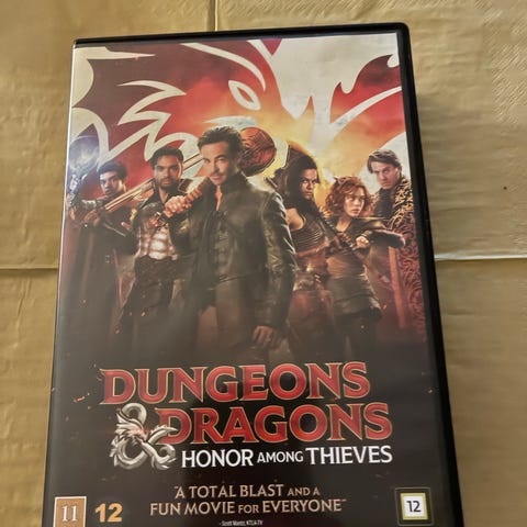 Dungeons & Dragons dvd film. Forsiden viser skuespillerne og en drage i baggrunden. Filmen er en fantasy-/eventyrfilm baseret på rollespilsuniverset Dungeons & Dragons. Fysisk medie i dvd-format, egnet til dvd-afspillere, der understøtter dette format.