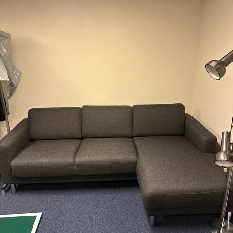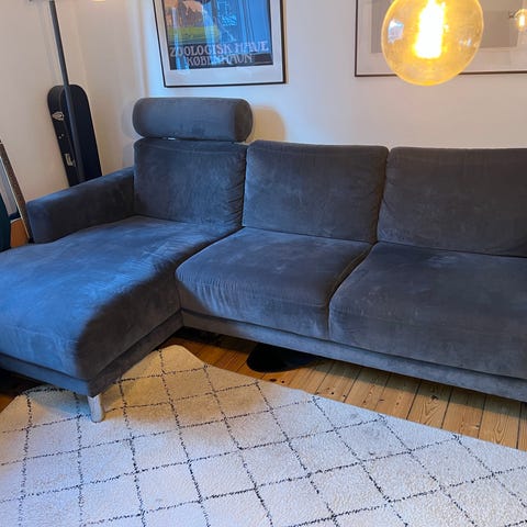 Ilva Cleveland 3-personers sofa med chaiselong, Riviera 51 Antracit stof, ben i krom