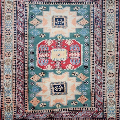 En ægte persisk tæppe eller orienttepppe som Kazak er verdenskendt for sine kraftfulde geometriske mønstre og sin udtryksfulde symbolik. Designet har rødder i traditionen fra Persien og Kaukasus, hvor store medaillons, stjerner og romber dominerer billedet. Disse klare, arkaiske former giver tæppet en tidløs modernitet og en stærk tilstedeværelse i rummet.
