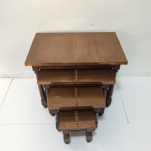 Titel: Elegant sæt af tre nesteborde i træ, vintagestil, victoriansk.