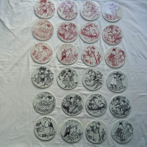Månedsplatter, Bjørn Wiinblad, 18 månedsplatter med enten rød eller sort dekoration, Nymölle, Denmark: