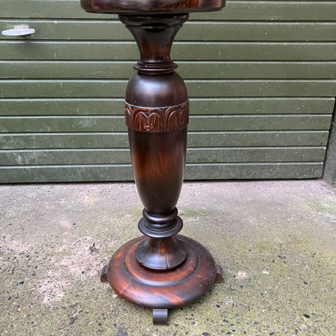 Elegantt piedestal til plante af massivt træ med kobberacenter, lavet i Nederlandene, fra midten af 1900-tallet, højde 69,5 cm, Ø øverste 21 cm, Ø nederste 30 cm, i god brugt stand med små alderstegn og pletter. Klik på den blå "gå til varen" knap, for at købe eller byde på denne vare. Den samlede pris vil blive vist inden du afgiver dit bud.