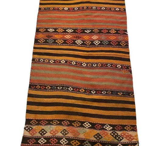 Oriental Kilims er nogle af verdens smukkeste skatte. Jeg vil gerne lægge vægt på tilstanden af kilimen. Farverne i kilim’et er let ude af farve, hvilket naturligt viser dets alder og vintage karakter. Den overordnede tilstand er god i betragtning af dets alder. Kilim’en er renset med ikke-kemisk shampoo. Genstanden er klar til afsendelse. Den vil blive sendt via DHL Express til berettigede lande (EU, USA, Australien) hvor levering inden for 1-4 dage er garanteret. For resten af nødvendige oplysninger om varen kan findes nedenfor.