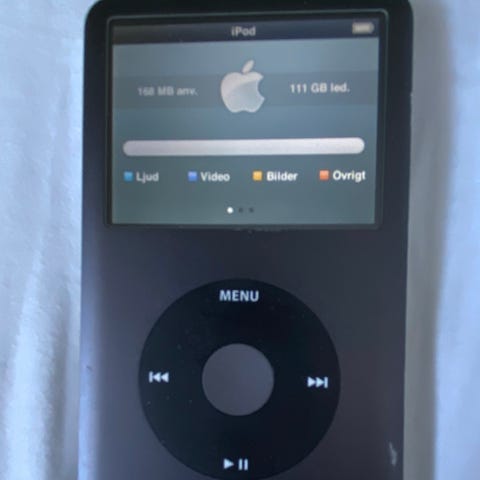 Apple iPod Classic musikafspiller med 120GB lagerkapacitet. Enheden har farveskærm og det klassiske klik-hjul til navigation mellem musik, video, billeder og andre filer. Bagsiden er i metal, og der er hovedtelefonudgang samt 30-pin dockstik til opladning og synkronisering med computer og kompatibelt tilbehør. Velegnet til opbevaring og afspilning af et stort musikbibliotek og andre mediefiler.