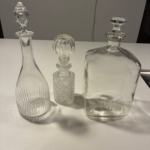 Sæt med 6 røgvinsglas i krystal uden bly, grønsmaragdfarvet, skabt af de bedste glaspustere og skærere i verden fra Moser med det ikoniske mønster 'Lady Hamilton', skabt i 1934, et af virksomhedens største designklassikere (ikke underskrevet). Gennemsigtige paneler, skåret, flade kanter uden finish, sekskantet stang og rund fod. Lady Hamilton-kollektionen fra Moser er en verdensberømt serie: elegant og afbalanceret. Opstået i 1934, inspireret af Emma Hamilton, hustru til den britiske diplomat William Hamilton og formodet elskerinde til admiral Horatio Nelson. Dette vintage sæt blev produceret i Tjekkiet i 1950'erne. Mål: højde 13,6 x diameter 7,8 cm.