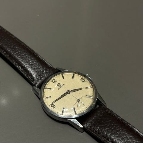 Omega-ur vintage fra begyndelsen af 60’erne, urkasse i stål, diameter 35,5 mm (eksklusive krone), bagkassen mærket OMEGA med serienummer;