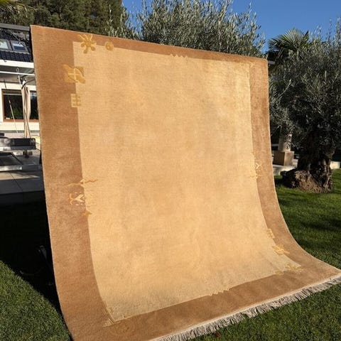 For at komme ind i vores lager, er det blevet renset på et vaskeri, der er specialiseret i håndknyttede tæpper, og er derefter ikke længere brugt.