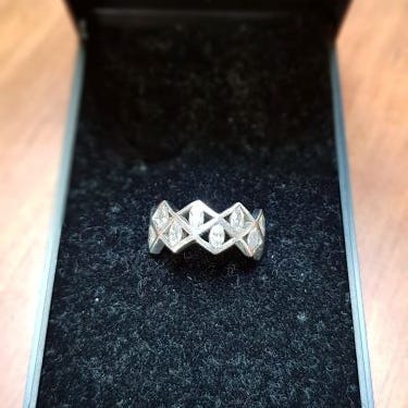 Smuk buttet sølvring med keramik udsmykning fra spanske Helena Rohner, der laver smukke enkle smykker. Der er knækket lidt af keramikken, som kan ses på billedet.