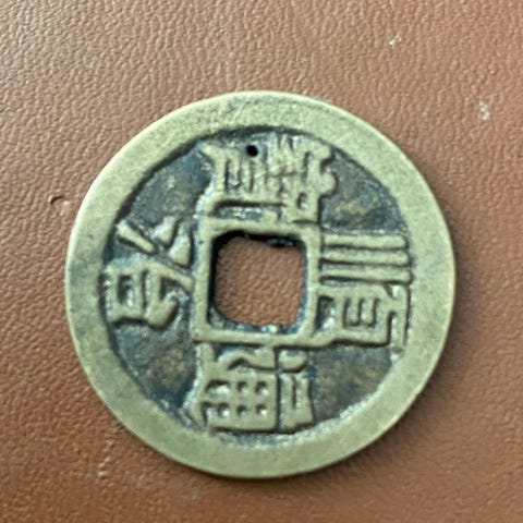 K9) "BOO JE" (Chekiang mønt), radical マ i 通; ,Tong med 1 prik, Hartill#22.349, Schjoth 1470