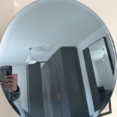 Spejlet er velegnet til ophæng på væg i entré, soveværelse eller stue. Rammen har en glat, metal-lignende overflade og en enkel, moderne profil. Spejlet kan bruges som helkropsspejl afhængigt af ophængningshøjde og placering.