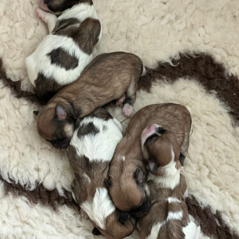 Moderen er førstegangsfødende, og fødte 3 hun og 2 hanhunde d.9 januar 2026