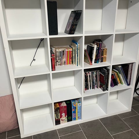 To hvide kubiske / kvadratiske reoler. De har stået på mit loftrum i mange år.