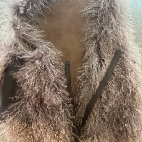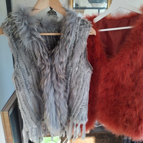 Lækreste pels vest med skind i sider samt bindebånd str S/M