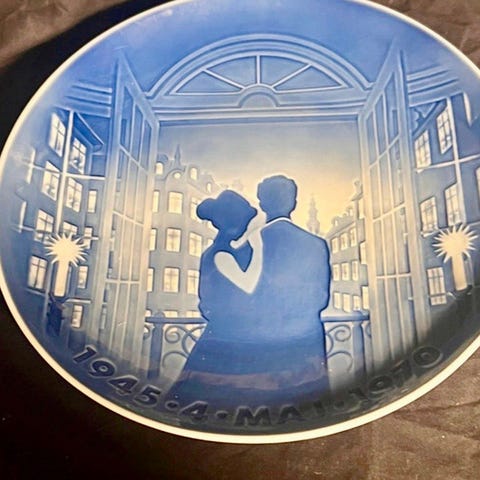 Bing & Grøndahl tallerken med kirke motiv blå hvid porcelæn