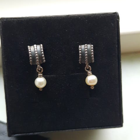 Små, fine og feminine ørestikker udført i Sterlingsølv prydet med smukke perler.