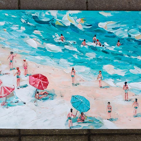 Strand på en blæsende dag – Akryl på lærred – 60 x 46 cm – Stemningsfuldt havmotiv