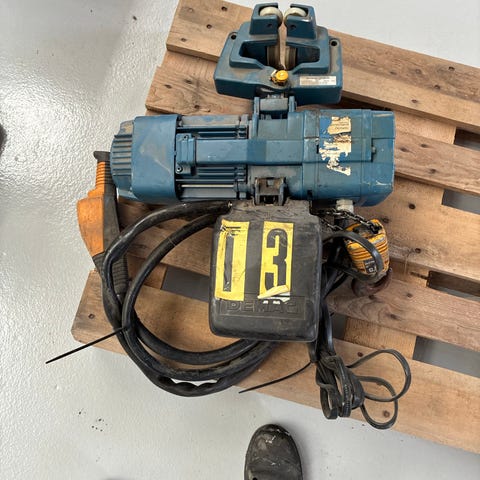 Talje 1000 kg. Elektrisk med løbepas og 6m skinne befinder sig i Skejby Århus N
