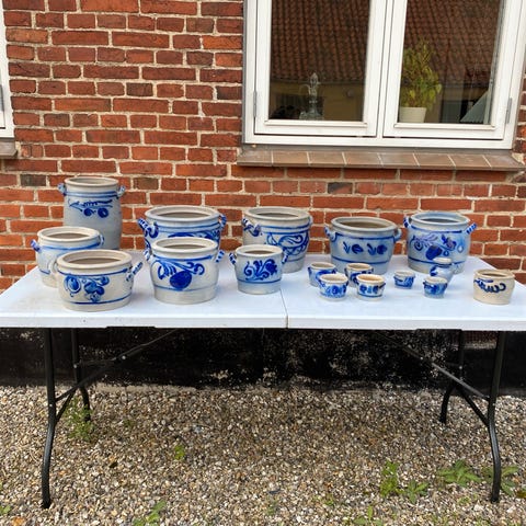 Glaseret hollandske syltekrukker.