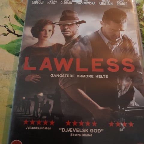 Lawless dvd film. Krimidrama om brødre i gangster-miljø under forbudstiden i USA. Forsiden viser hovedrollerne og aldersgrænsen er 15 år. Velegnet til afspilning på dvd-afspillere, der understøtter standard dvd-format.