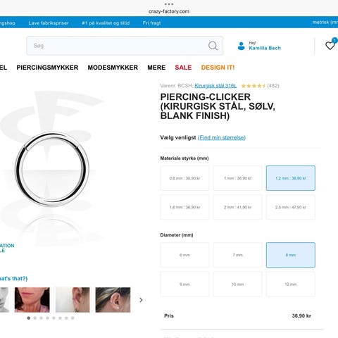 Piercinge ringe clicker 6mm 1,2 mm tyk kirurgisk stål sølv