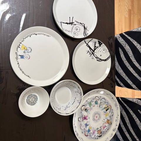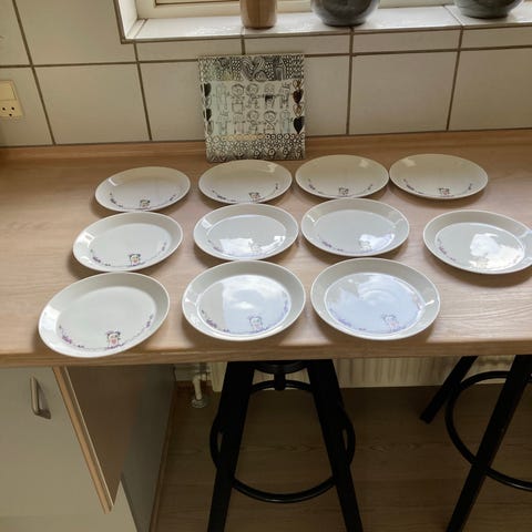 Og 6 frokosttallerkner i 12 cm.