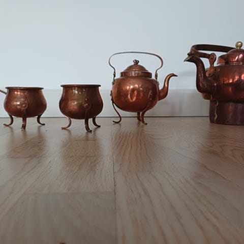 Eda kobberkedel med låg og fastmonteret hank. Kedlen er udført i hamret kobber og står på en rund bundplade. Velegnet som dekorativt køkkenredskab eller til brug, hvor kobberkedel ønskes. Kapacitet og præcise mål ikke oplyst.