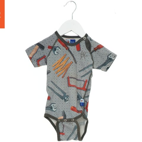 Langærmet bodystocking med trykknapper ved skulderen og forneden. Dragten har et print med motiver af biler, huse, fugle og natur, der skaber en farverig og livlig blanding. Materialet ser blødt ud med kontrastsyninger ved kanterne.
