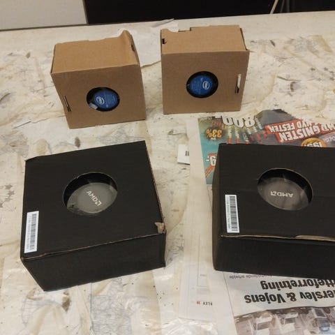 CPU installationsværktøj i en plastemballage. Dette værktøj bruges til at installere en CPU i en sokkel på et computer bundkort. Det er designet til at gøre CPU installationen lettere og mere præcis. Det har et let genkendeligt firkantet design med indikatorer for korrekt placering af CPU'en.
