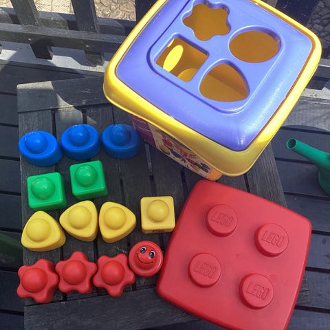 Puttekasse fra LEGO. Klodserne kan også stables.