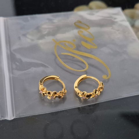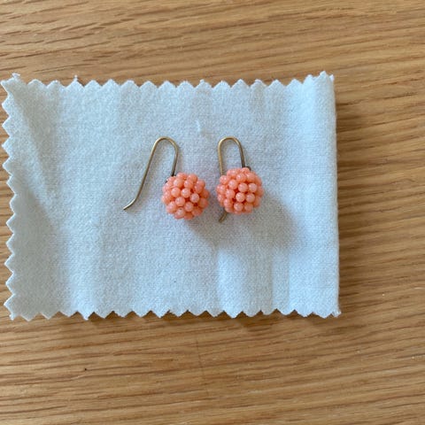 Et par sorte dangleøreringe med en tekstureret kugle, der hænger fra en lukket krog. Kuglerne har en nubret overflade, der giver et moderne og diskret udtryk. Øreringene er små og lette, ideelle til både hverdag og specielle lejligheder.