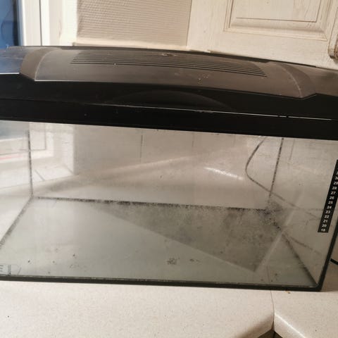 Vandet er lidt “hvidt” da der lige er skiftet lidt vand. Medfølger ca 25 gubbier og en sugemalle.