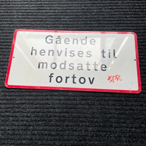 Skilte, Metalskilt, 15x39cm med ophængsbeslag på bagsiden. (1587)