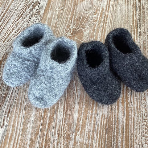 Futterne er grå og har blødt, quiltet materiale med knaplukning foran. Undersiden har skridsikker sål med gummiprikket struktur, som giver bedre fodfæste på glatte overflader. Velegnet som indendørs futter til små børn