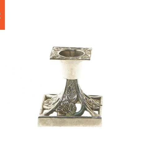 19 cm høj lysestage i sølvfarve, med en robust design og fin detaljeret kant rundt om bunden. Den har en beskyttende filt på undersiden for at forhindre ridser på overflader. Designet er klassisk og enkelt, ideel til brug i stuen eller som en del af borddekorationen.