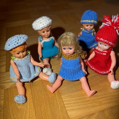 Dukker i strikket tøj (str. 27,5 cm)