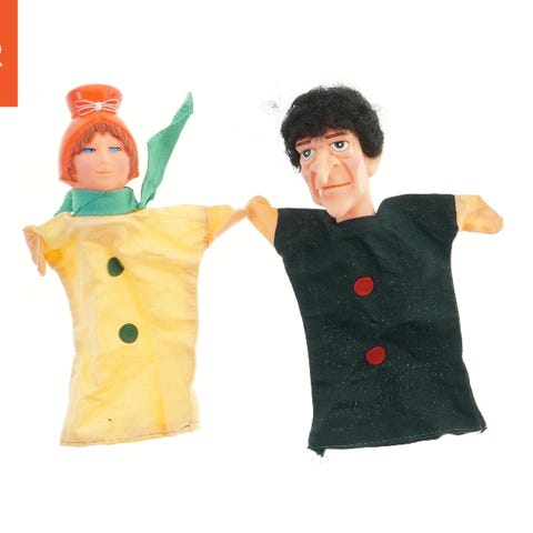 To fine, små dukker med yndige ansigter og hjemmestrikkede tøjsæt bestående af heldragter, huer og tørklæder. Den ene dukke er klædt i lyserødt tøj, og den anden i blåt. Dukkerne måler 27,5 cm i højden. De er velegnede som legetøj eller dekorative samlerobjekter. Dukkerne er indpakket separat i beskyttende plstic.