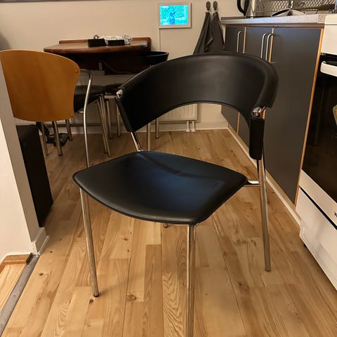(Nypris (Calligaris original): Typisk mellem 2.400 kr. og 3.200 kr. pr. stol, afhængigt af om betrækket er ægte læder eller kunstlæder.)