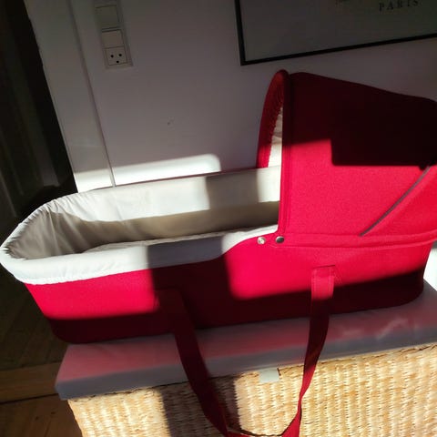 En nærmest ubrugt babylift fra Odder, som vi aldrig har taget i brug. Betrækket kan sagtens bruge en vask og frisk luft. Kan lægges i en barnevogn.