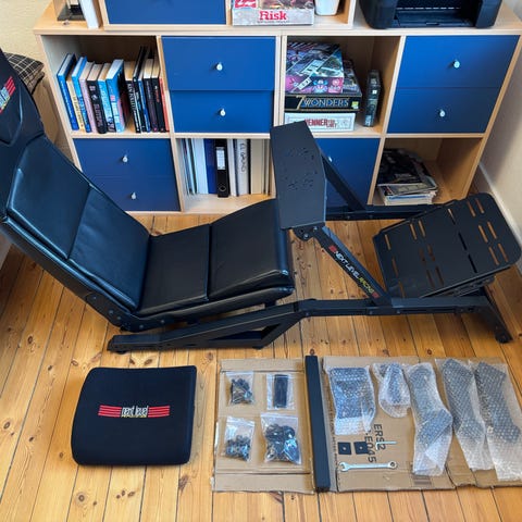 Prisen er for racersæde og stel samt ratbase (inklusiv 3 rat) og pedalsæt.