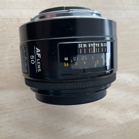 Minolta AF Zoom 70-210mm objektiv i sort. Zoomobjektiv med brændviddeområde 70-210mm, velegnet til teleoptagelser. Objektivet har autofokus og mekanisk zoomring. Monteringsfatningen fremgår af billederne, og der ses elektroniske kontakter ved bajonetten. Objektivet er udført i metal og plast med gummieret grebsring for bedre håndtering. Egnede anvendelser kan være portrætter, natur- og sportsfotografering afhængigt af kamerahus og kompatibilitet.
