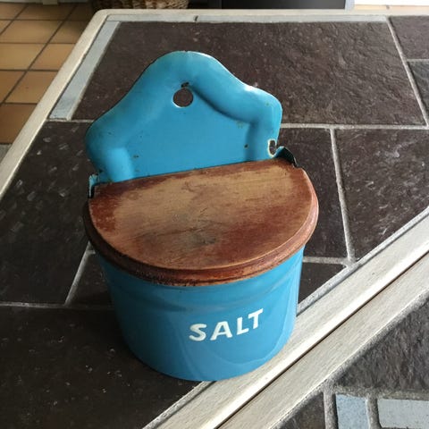 Fajance, Saltkar, Håndmalet saltkar 16,5 cm højt og 11 cm i dia