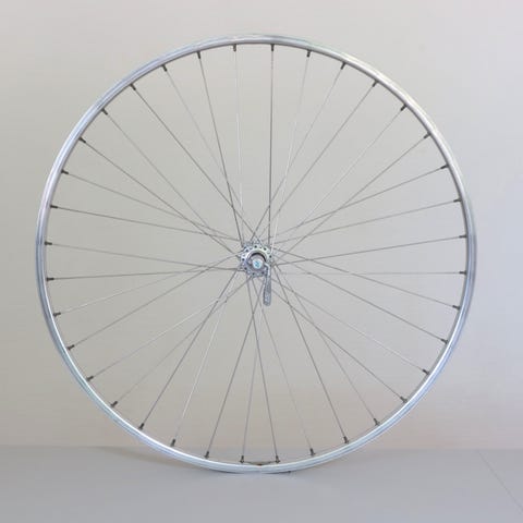 Forhjul med 18 egre i radial opspænding, brugt men i pæn stand og stadig med meget gods på bremseflangerne. Velegnet til vintertræning eller til brug på hometraineren. Vægt kun 745 gram. Komplet med QR/hurtigbespænding. Kan sendes for + 100 kr. ved forudbetaling