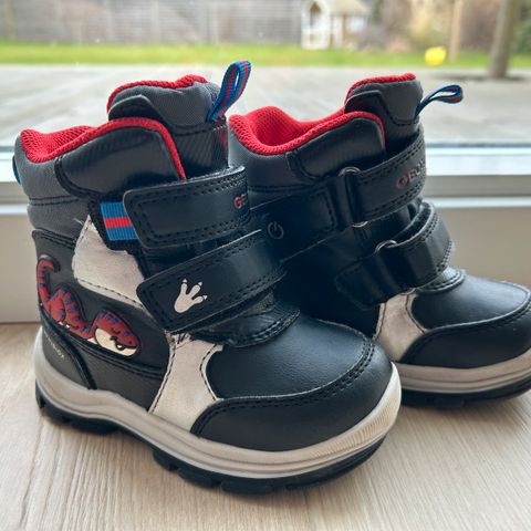 Geox Amphibiox vinterstøvler til børn, unisex. Amphibiox-teknologien er konstrueret til at være vandafvisende og åndbar. Støvlerne er i mørkeblå/sort nuancer med kontrastsyninger og snørelukning foran samt stopper til justering. Overdelen er i kombination af tekstil og syntetisk materiale, og sålen er i gummi med mønster for bedre fodfæste. Indvendigt er støvlerne foret for ekstra varme. Velegnet som vinter- og overgangsstøvler til både piger og drenge.