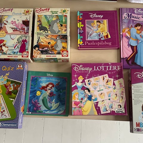 Disney Prinsesser puslespil med motiver af forskellige prinsesser og slotte. Brikkerne viser blandt andet prinsesser i kjoler i forskellige farver samt eventyrslotte i baggrunden. Egnet som puslespil og aktivitet for børn, der kan lide figurer fra Disney-universet.
