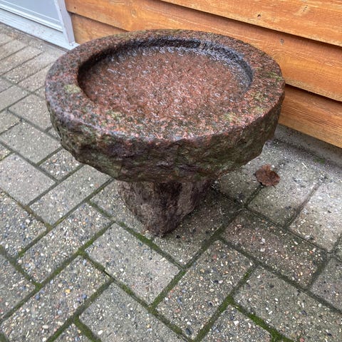 Stort smukt og rustikt fuglebad i massiv granit