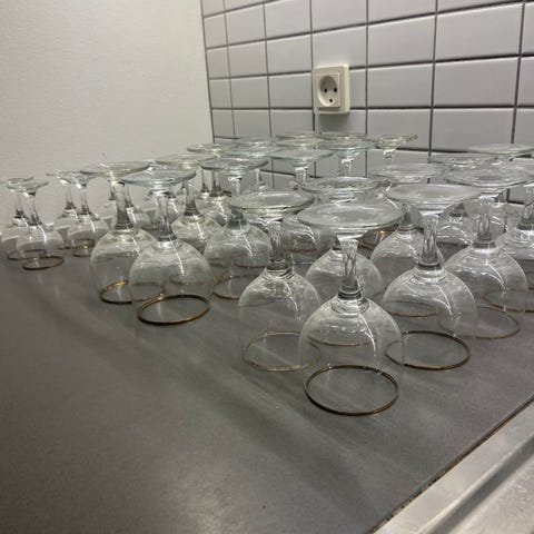 11 hvidvinsglas (sleben stilk), pris kr. 60,- pr. stk.
